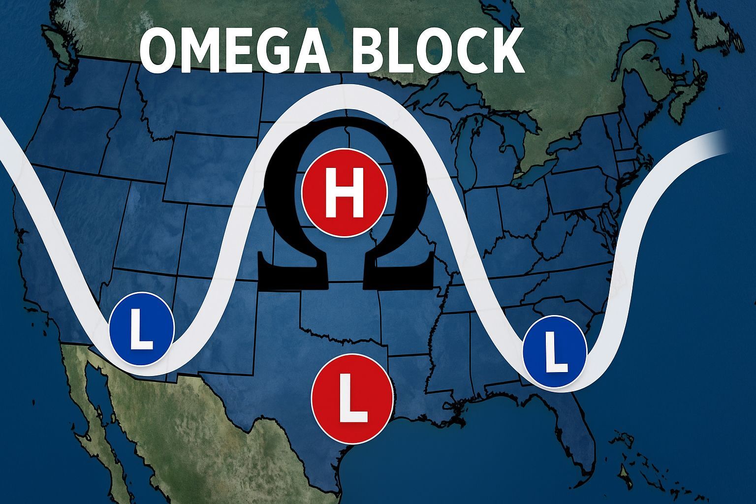 An Omega Block is a large-scale, stationary weather pattern characterized by a high-pressure system flanked by two low-pressure systems, forming a shape reminiscent of the Greek letter Omega (Ω) in the jet stream. This configuration disrupts the typical west-to-east movement of weather systems, leading to prolonged periods of consistent weather in affected regions.